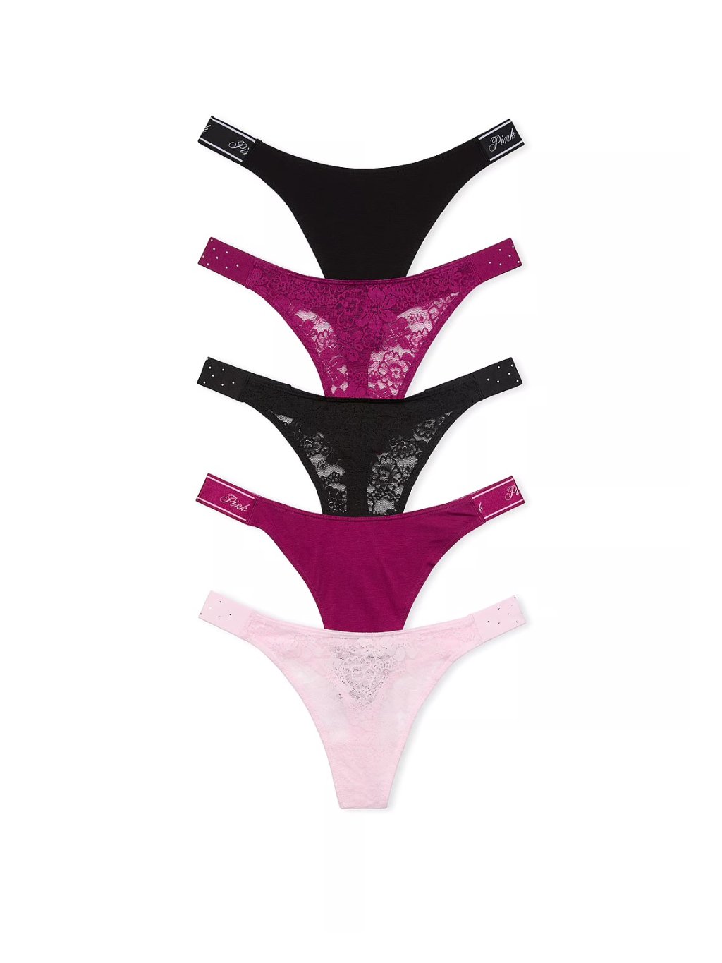 PINK Victoria's Secret tanga krajka-bavlna - balení 5 ks (dárkové balení)