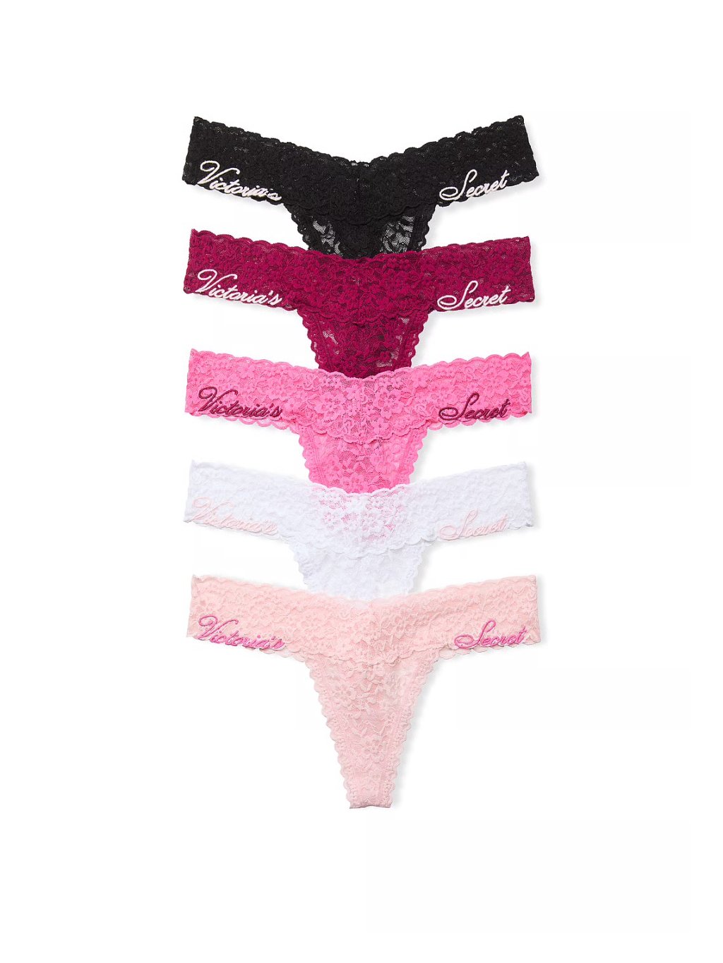 Victoria's Secret krajková tanga - balení 5 ks (dárkové balení)
