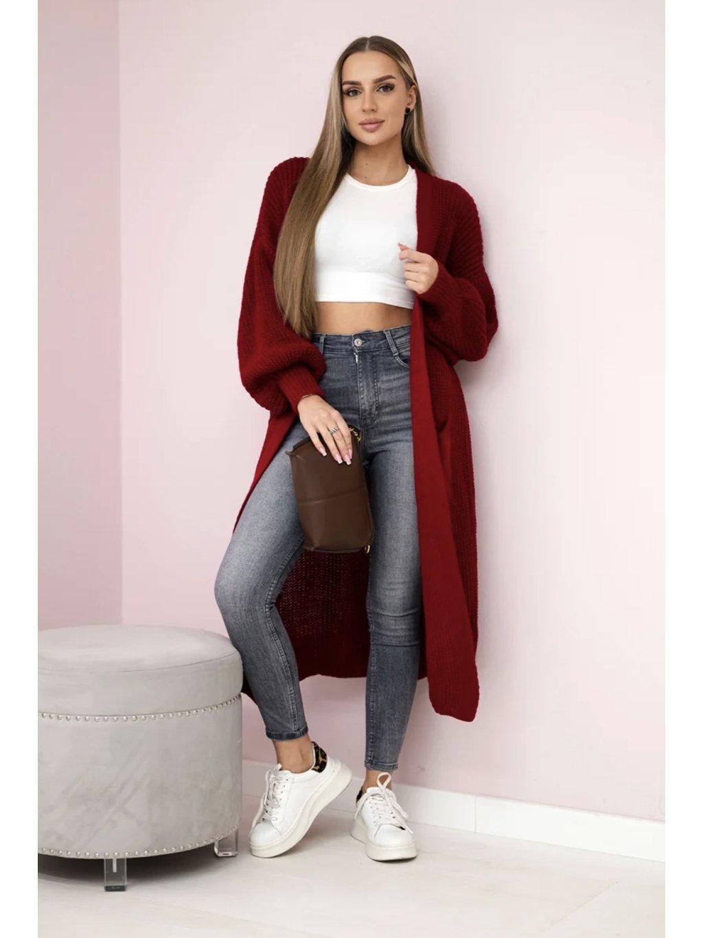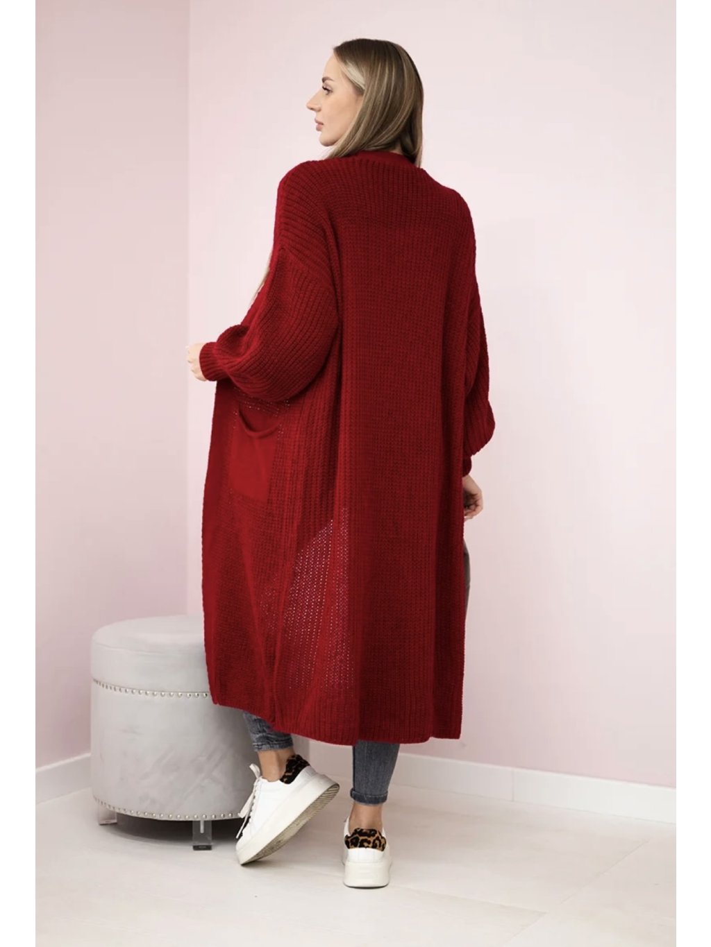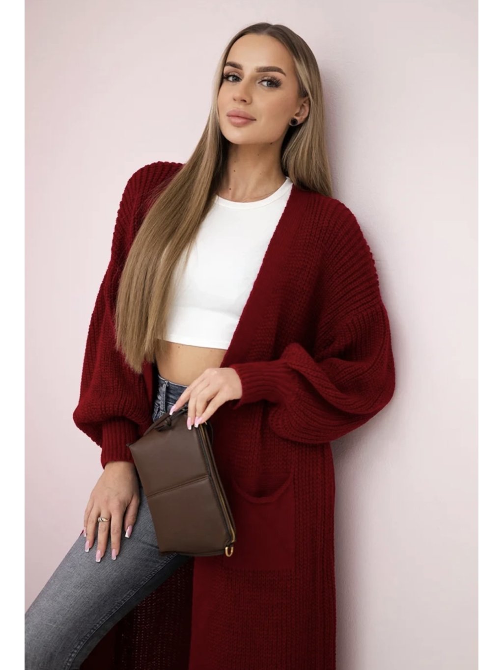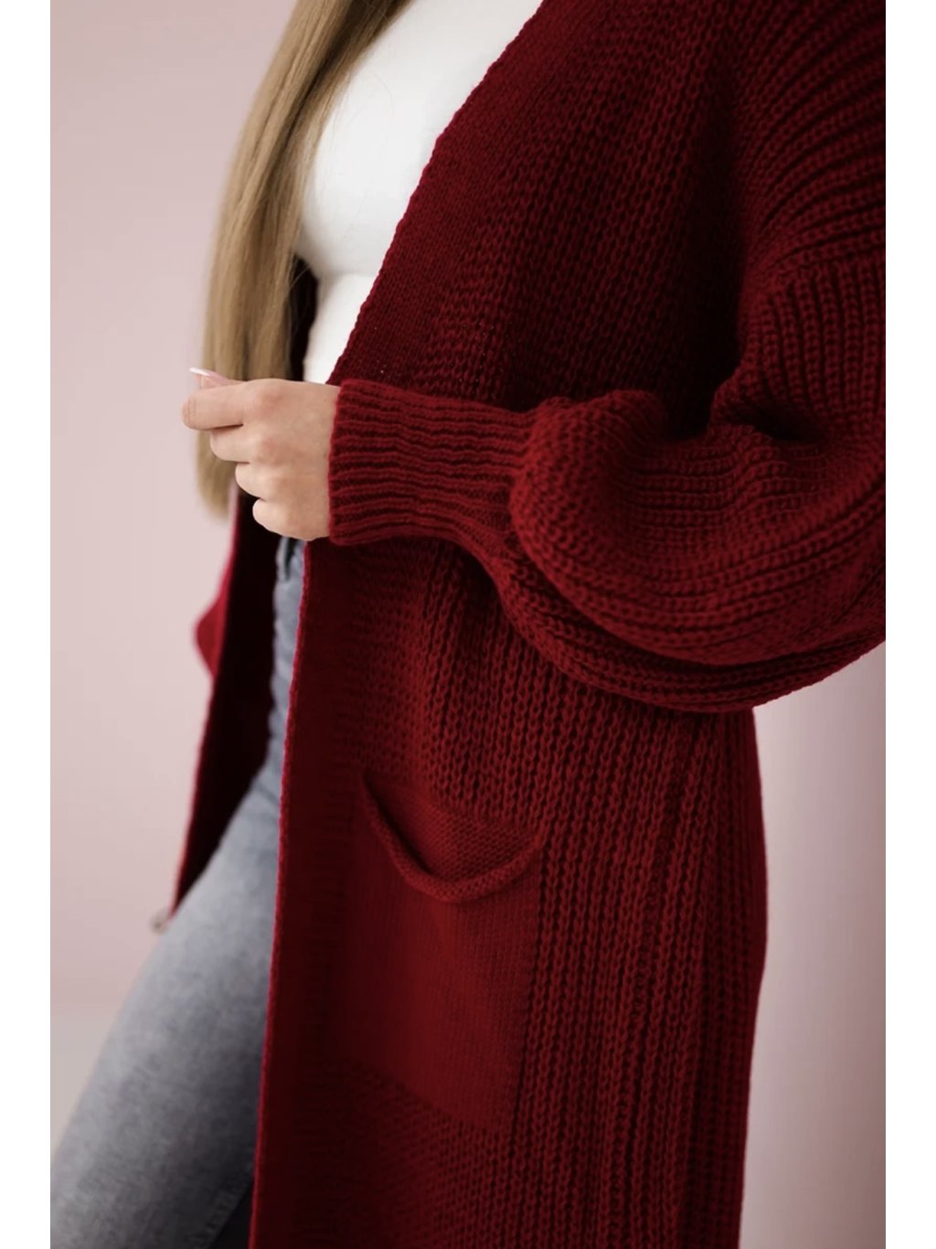 Vínový dlouhý kardigan